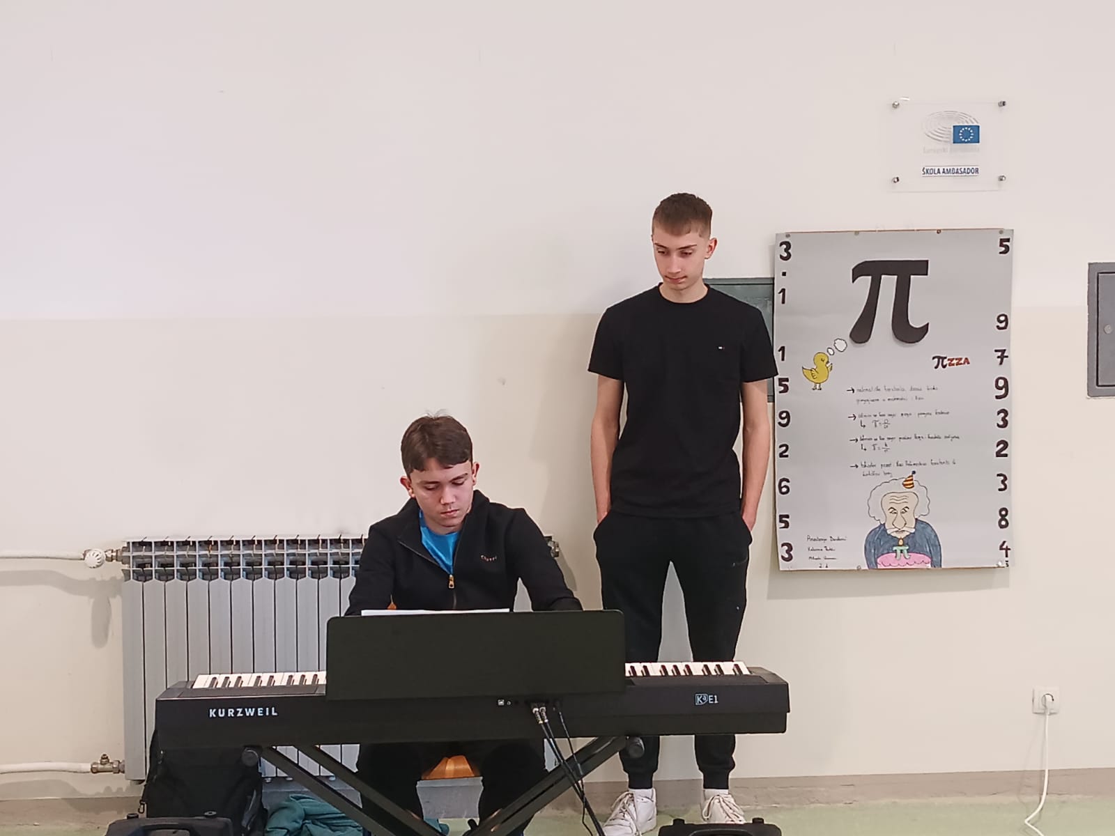 U glazbenom dijelu programa učenik 2. e razreda Josip Bilen je odsvirao Pi pjesmicu kojom je na kreativan način predstavio znamenke ovog poznatog matematičkog broja.